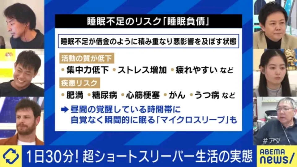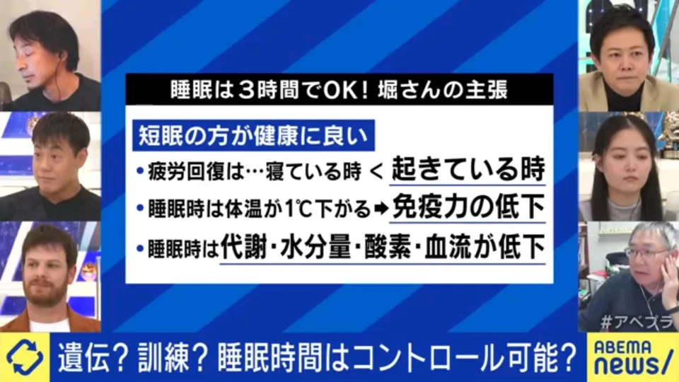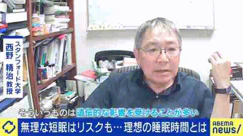 而面對堀大輔這種少睡眠的生活方式,斯坦福大學醫學院精神科的西野精治教授,提出了質疑,他認為,能夠少睡的人,通常是受到遺傳的影響。