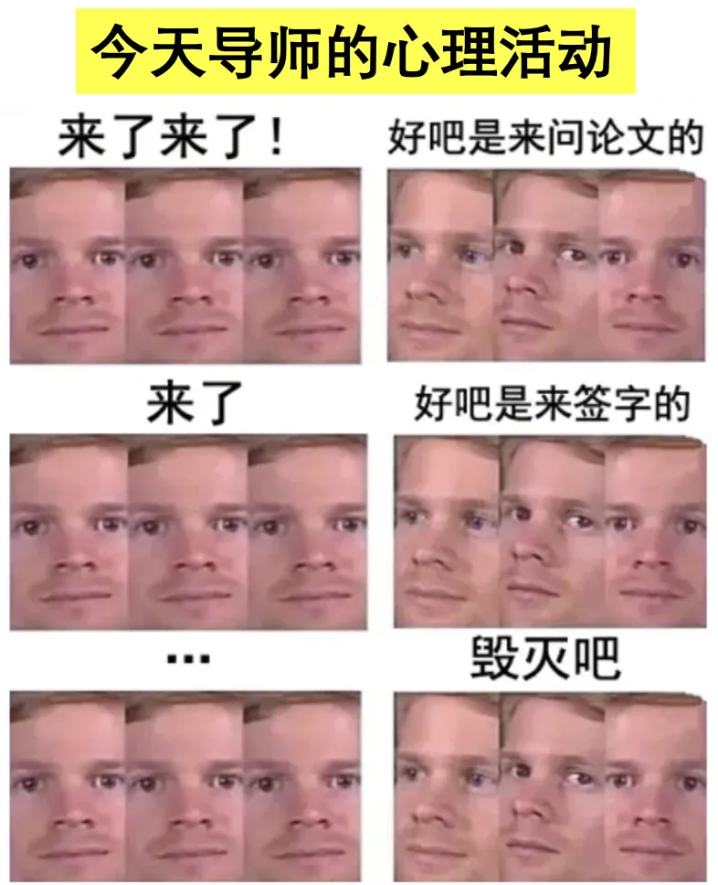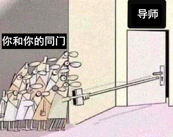 通常是你們一整個課題組十幾號人,在勇敢的大師兄或者被迫****勇敢的小師弟的帶領下,組團前往導師的辦公室,站在門口為究竟哪個炮灰該去敲導師辦公室的門而大打出手。