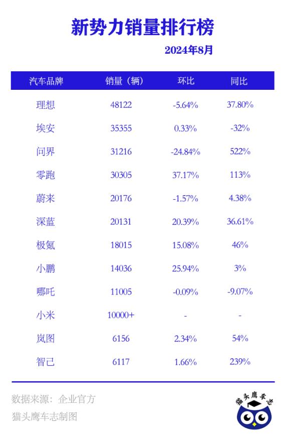 8月新勢力銷量揭榜:理想下滑?智己墊底 零跑“領跑”破三萬速度_風聞