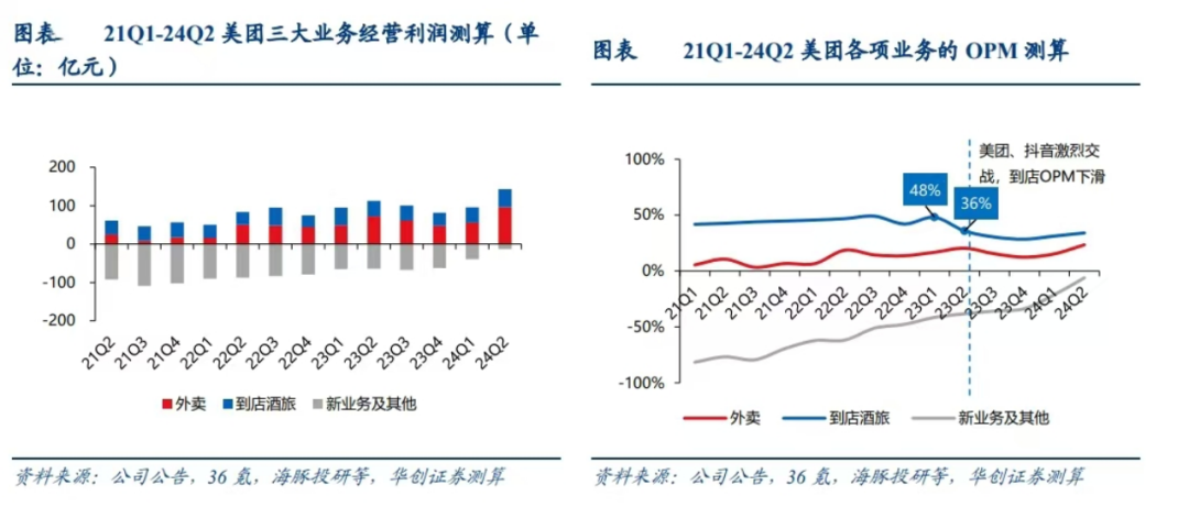 從美團各業務板塊的經營利潤看,外賣業務的經營利潤增速保持正增長、OPM (經營利潤率)穩步提升,新業務持續減虧,而到店的 OPM 相對不穩定,或因易受競爭影響而充滿博弈。