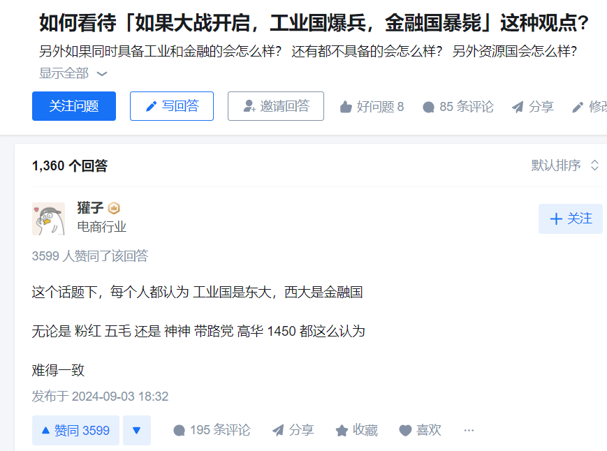 所以吧,説什麼工業國大戰金融國,這完全就是某種贏學思維下,某種爽文罷了。漏洞太多,錯誤太多,根本不值得一駁。