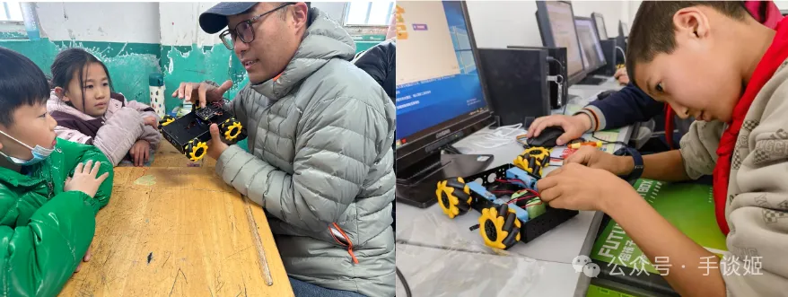 從上面的圖我們可以看到,上科技課的時候,他們手裏有一輛小車,而這個充滿科技感的小車,就成為打開孩子們新世界大門的鑰匙。