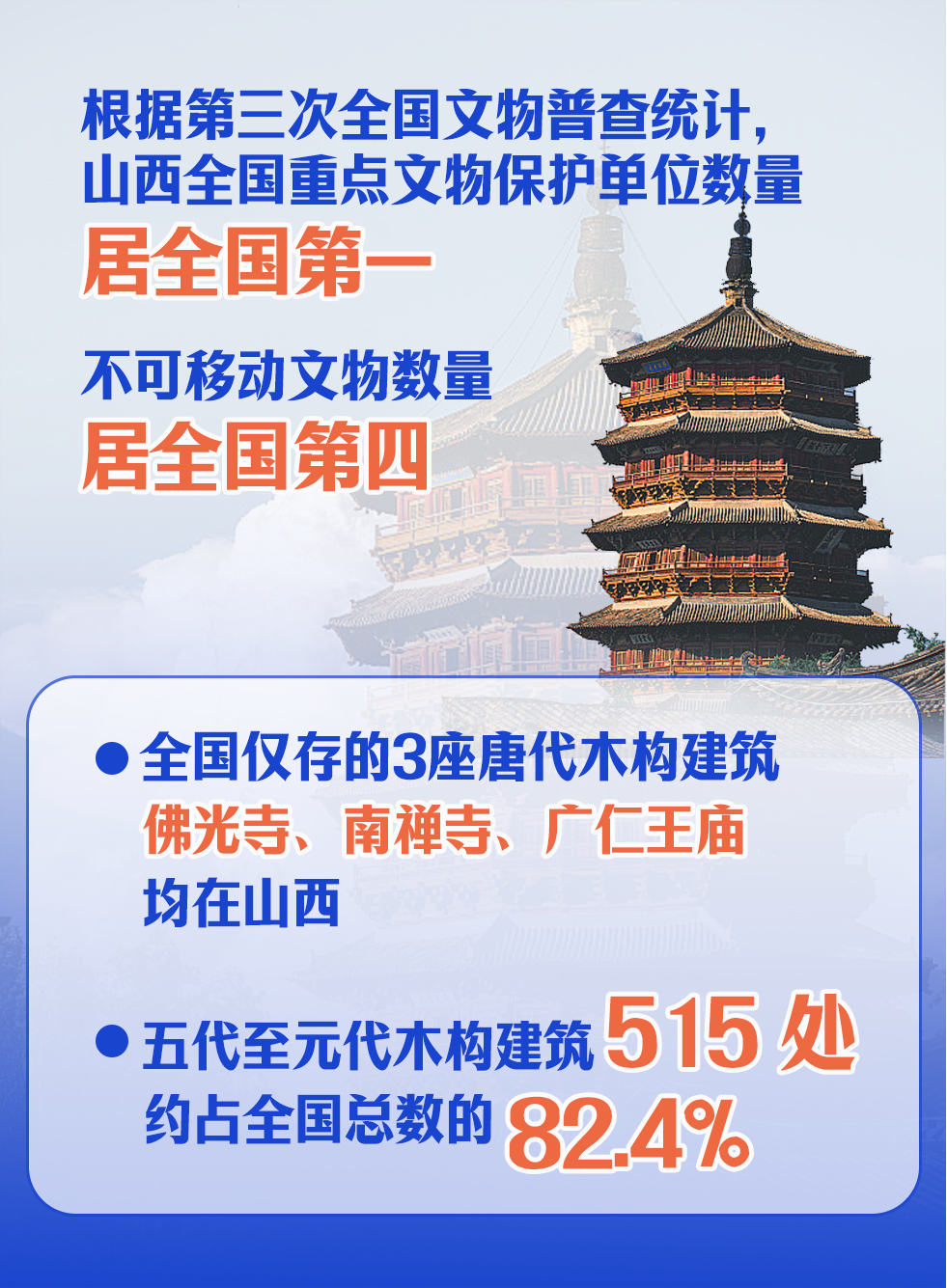 據統計,山西現如今有着30186處的不可移動文物,其中包括452處國家級重點文物保護單位,4處世界文化遺產,以及6座國家級歷史文化名城,使其在全國各省中居於首位。如此豐富的文化資源與鮮明的民俗特色,成就了山西獨特的地域文化身份。