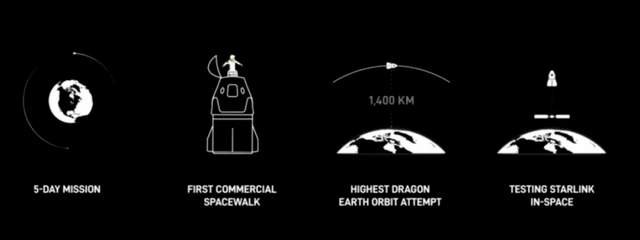 本項任務持續時間長達五天,其間,龍飛船的遠地點高度將達到1400公里,這是除阿波羅登月任務之外的最高飛行高度。