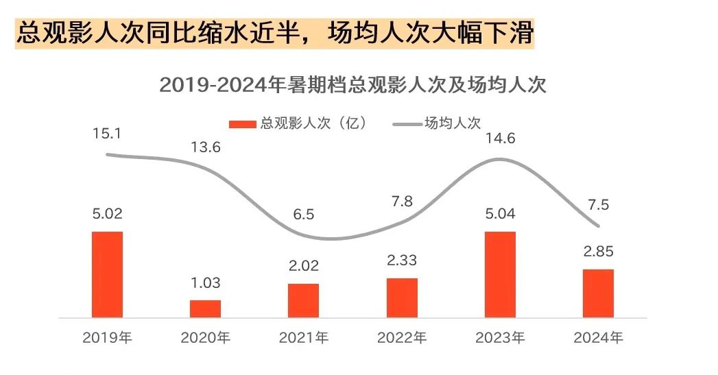 但是成本控制也很有可能趕不上營收降低的速度。從各個公司的財報顯示,放映板塊的成本下降的幅度均略大於營收縮減的程度。剛結束的暑期檔也釋放出對於院線公司而言較為悲觀的信號:觀影總人次的大幅下降,從去年的5.05億降至今年2.85億,觀眾的持續流失已不可避免。