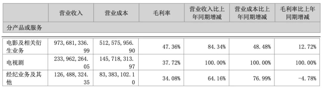 而博納的電影投資板塊,營業成本也下降71.86%。今年的博納,似乎逐漸遠離前幾年的主旋律商業大片的策略。在市場萎縮、觀眾熱情不再的當下,再次斥巨資打造“長津湖”式影片,已成一種重負。