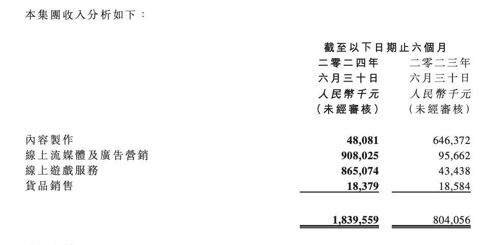 這部分利潤主要得益總體經營成本的下降,同期減少了48.48%,其稱主要是由於版權收入成本較低而導致。而在細分板塊內,佔比最大的影視娛樂,營業成本同比下降48.3%,對整體的成本控制貢獻良多。