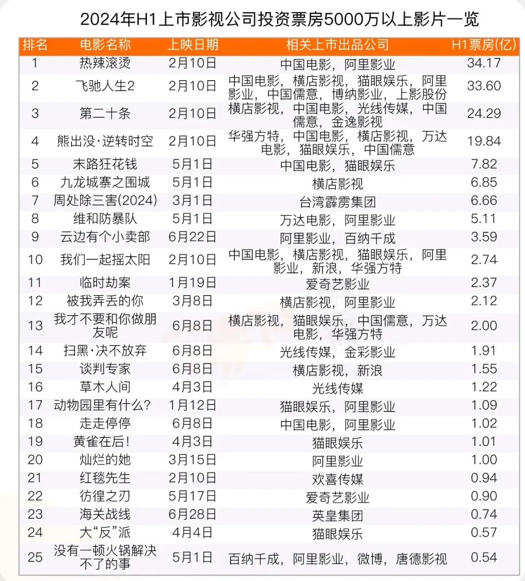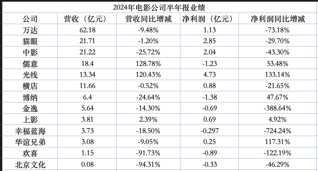 毒眸整理了13家電影行業上市公司的財報數據,以一窺上半年整個市場的實際效益。