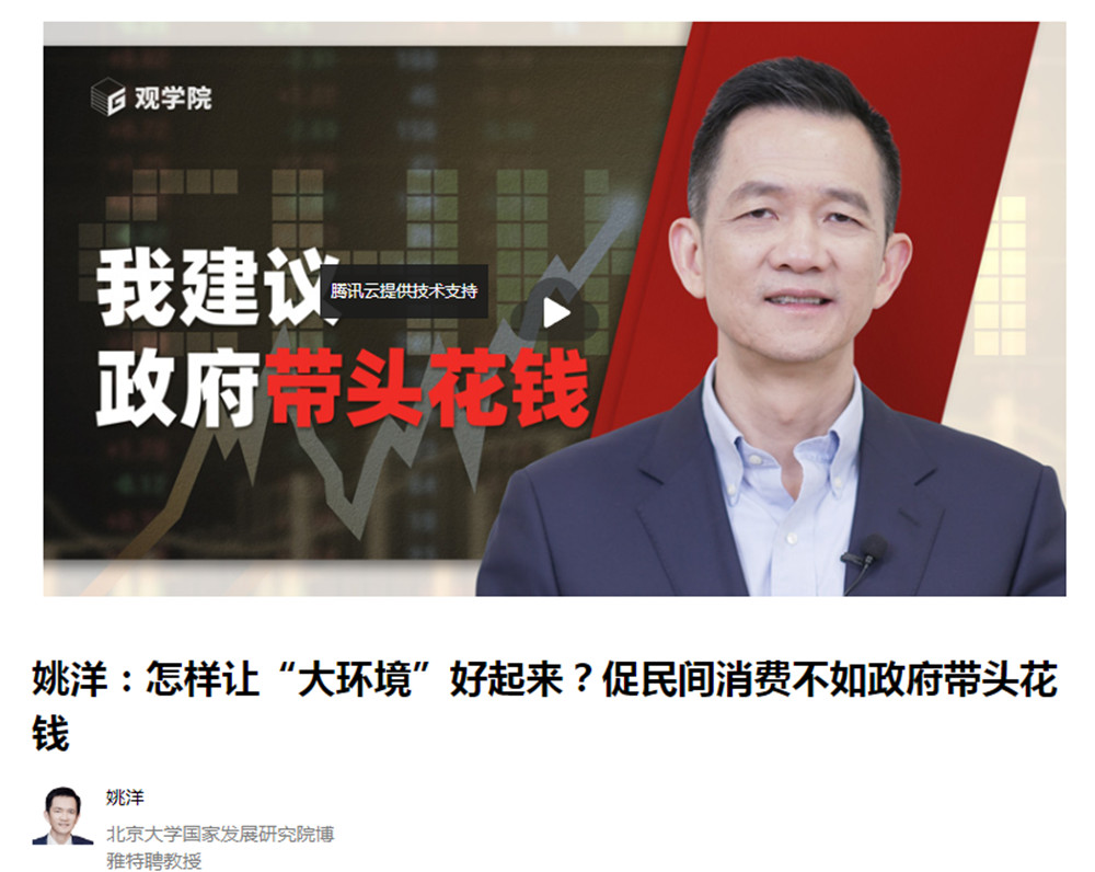 今天上午在瀏覽觀察者網時,讀到了北京大學姚洋所撰寫的《怎樣讓“大環境”好起來?促民間消費不如政府帶頭花錢》一文,字裏行間透露出作者對當前經濟不振的深切憂慮,但他在文中提出的“政府應帶頭花錢”作為刺激經濟、讓大環境好起來的解決方案,卻讓我感覺似乎開錯了藥方,反而給人一種“病急亂投醫”的印象。姚洋作為一名在經濟領域深耕多年的專業人士,發表的言論應建立在紮實的學術研究和嚴謹的經濟分析之上。遺憾的是,他在當前形勢下提出的“政府應帶頭花錢”,顯然是在朝天打空炮,與實際情況相去甚遠,有必要説道説道。