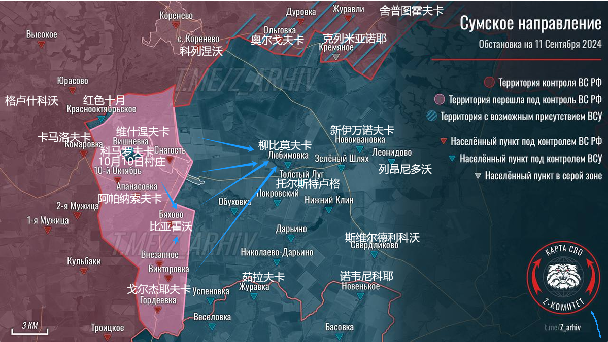 🔴此外,俄軍在博羅克、波格列布基和 馬丁諾夫卡方向的情況,也得到了改善。