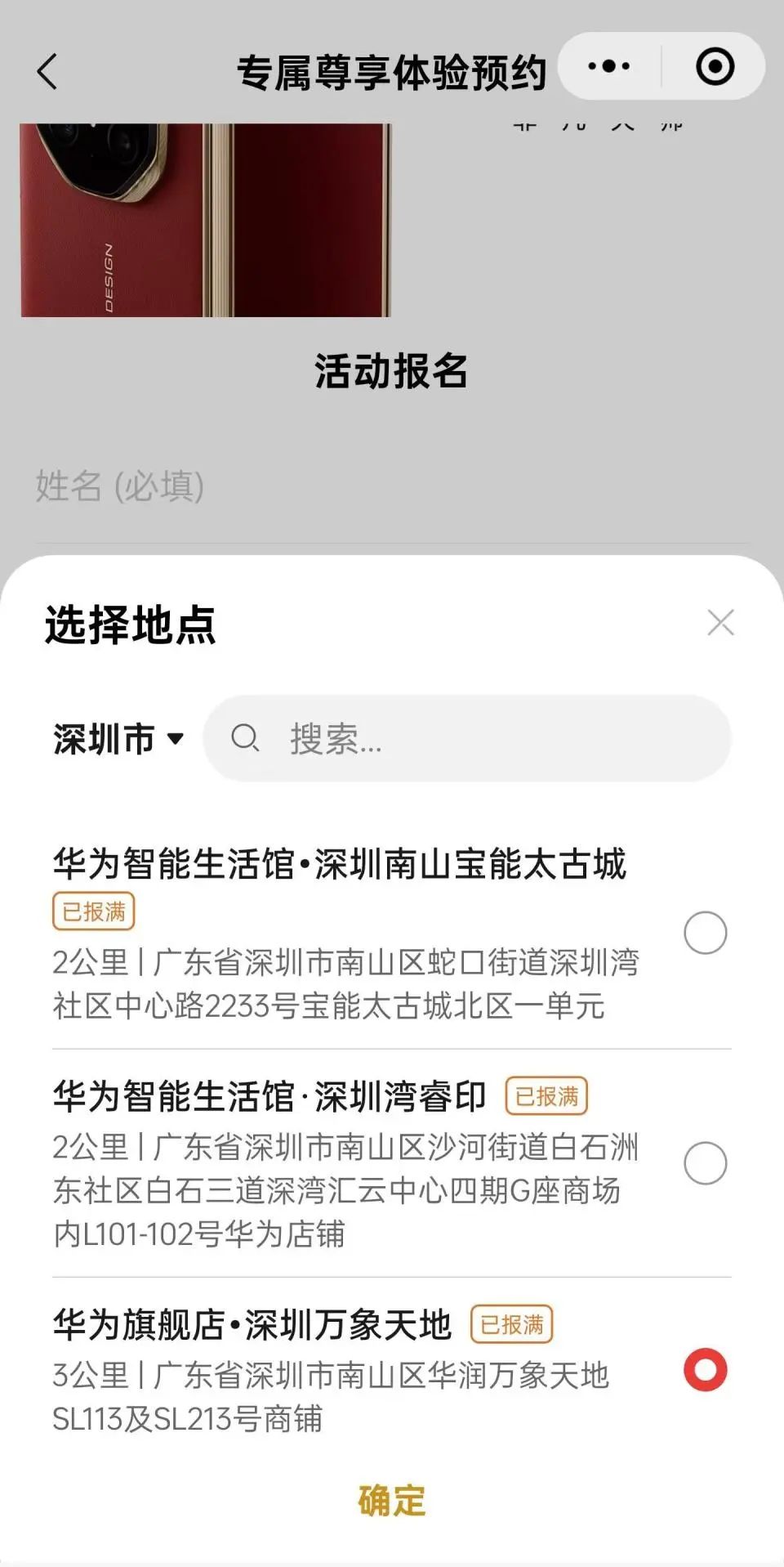 目前,MateXT需要通過門店預約體驗,時代週報記者進入預約界面,發現9月10日北京、上海、廣州、深圳幾個城市可預約的門店均已報滿。