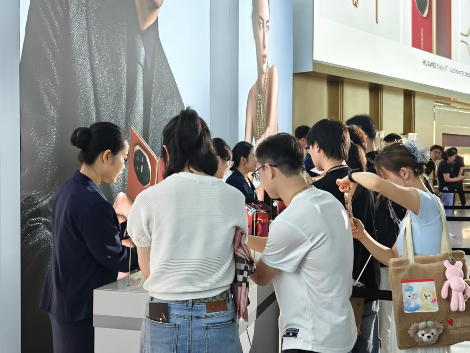 但華為多家體驗店已經線上都已經掛出了“已約滿”的標誌。“四點新機才開箱,現在剛上架不久!”有樣機的體驗店開始招待湧進店的客人,銷售人員正在加緊培訓產品信息,而消費者已經簇擁着那個僅有展示機——展開,摺疊,再展開。