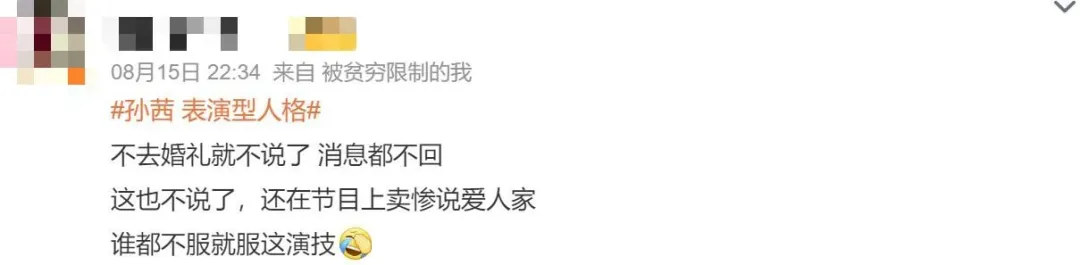 孫茜“槿汐姑姑”的温婉形象深入人心,卻因最近參加《甄嬛傳》衍生團綜,被吐槽“表演型人格”。