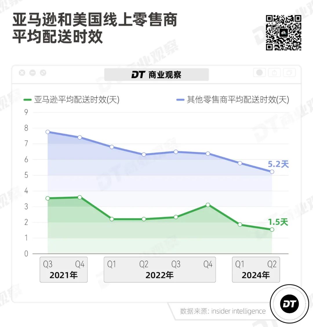 根據研究機構insider intelligence ,2023年,亞馬遜的平均配送時效已經低於2天。