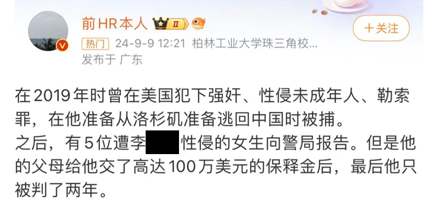 前述被父母送到美國讀經濟學的孩子,他不差錢,性侵案爆發,只是保釋金就是一百萬美金——摺合人民幣711萬3千8佰元!