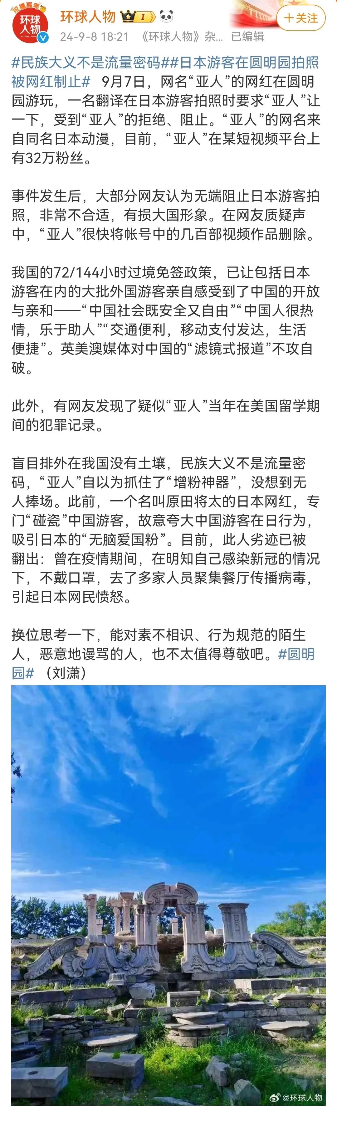 網紅阻止日本遊客在圓明園拍照,民族大義不是流量密碼_風聞