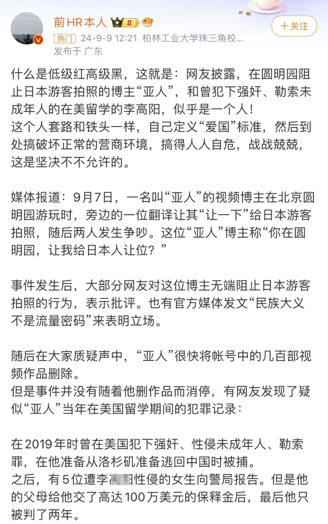 環球人物也提及這件事:“有網友發現了疑似“亞人”當年在美國留學期間的犯罪記錄。”