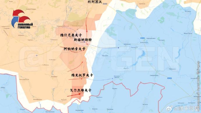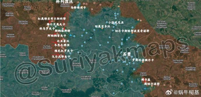 2、紅軍村:俄軍佔領了米哈伊利夫卡和烏克蘭斯克之間的一系列陣地,開始向第二處高地發起包圍,同時還在南部和東部街道取得了一些進展。