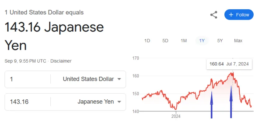 去年暫且不説,就以2024年來説,日元匯率從3月開始兑美元大跌,期間日本央行數次出手,偕同國內金融機構,不是賣美債就是拋售美元,以拉抬日元,搞得美國財長耶倫非常毛(生氣)。