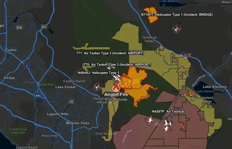 當局還建議以下地區的居民自願撤離:玫瑰峽谷路(Rose Canyon Road)、特拉布科溪路(Trabuco Creek Road)、特拉布科峽谷路(Trabuco Canyon Road)、特拉布科橡樹大道(Trabuco Oaks Drive)、喬普林環路(Joplin Loop)和庫克角(Cook’s Corner)。
