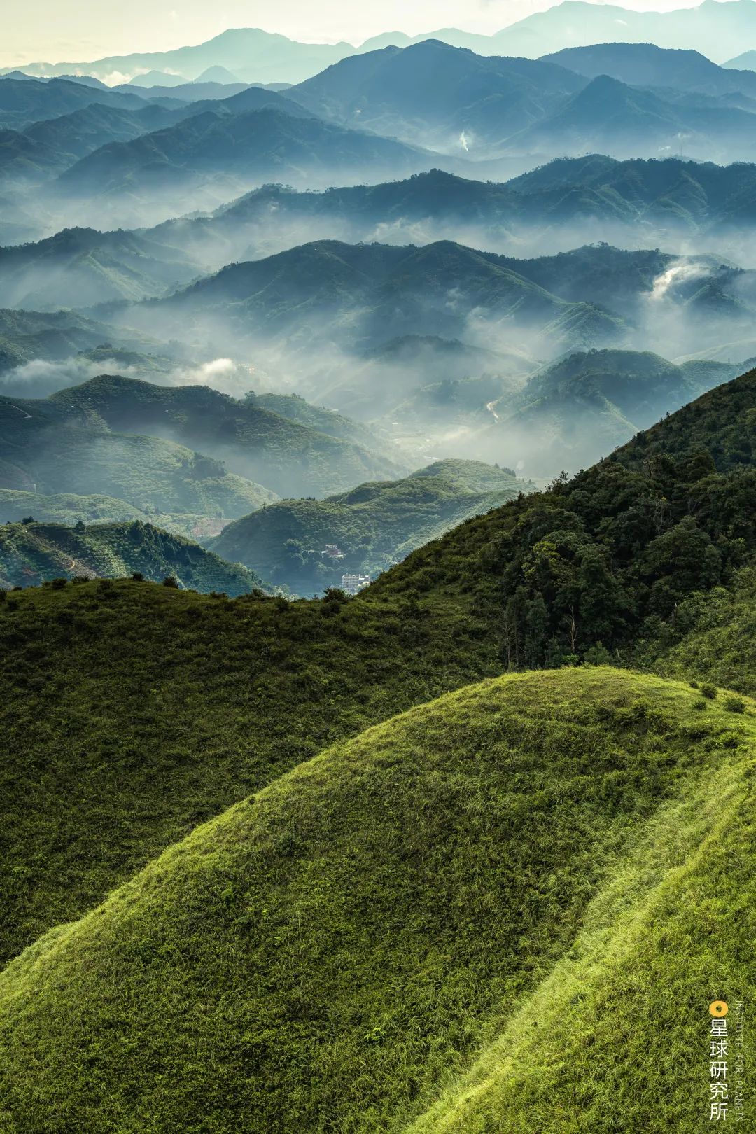 (四周水汽向粵西最高峯大田頂爬升,致使其西南側大霧嶺每年的冬春夏季50%的時間被大霧籠罩,全年大霧日數大於等於100天,圖為雲霧繚繞的大喊地,攝影師@MiloPhoto)