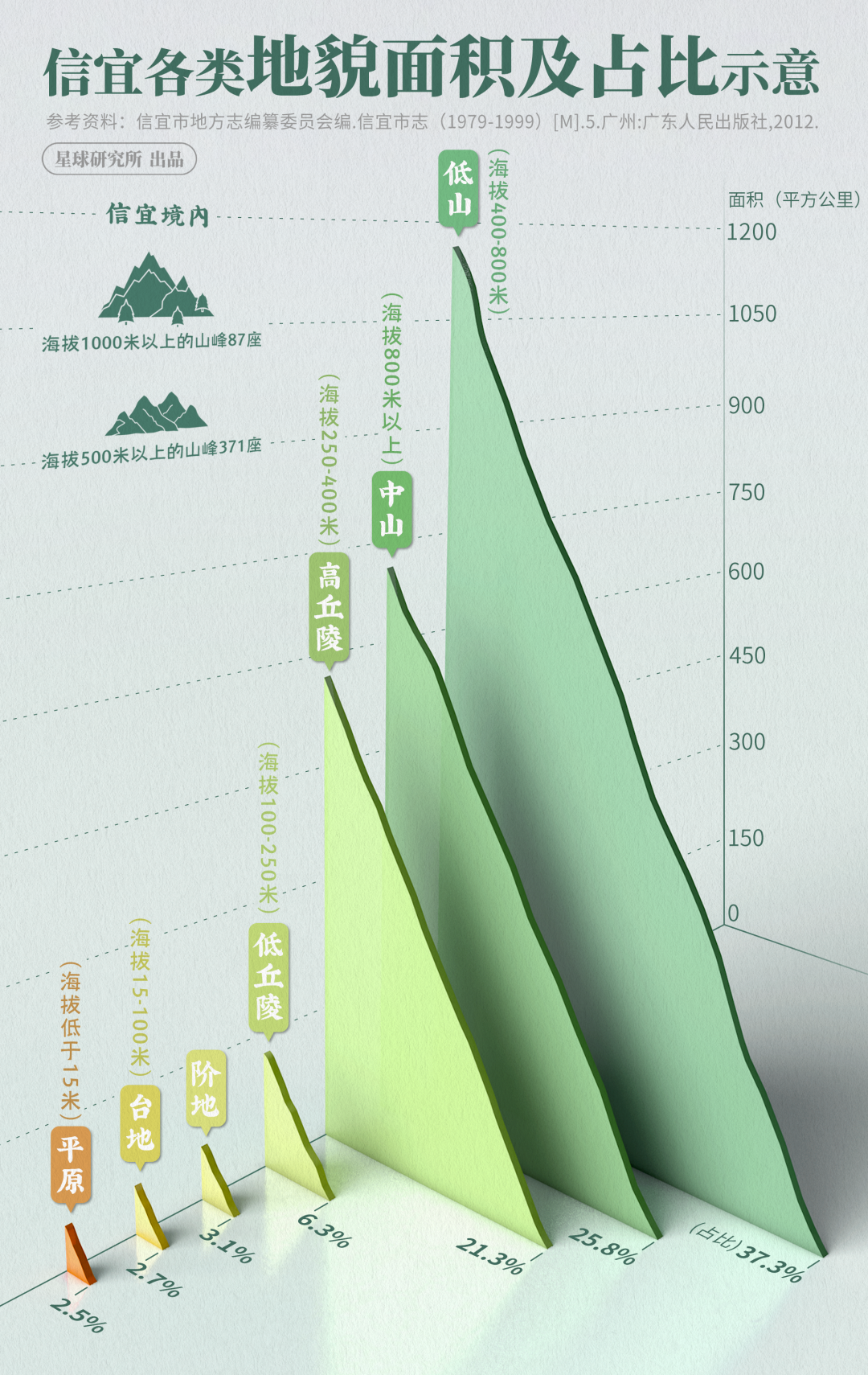 (信宜各類地貌面積及佔比示意,製圖@東平小龍/星球研究所)