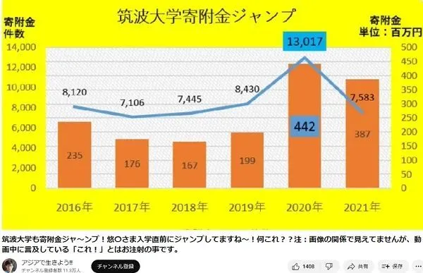 筑波大學和東京大學的捐款,很多人認為是皇室手筆,和悠仁升學有關。
