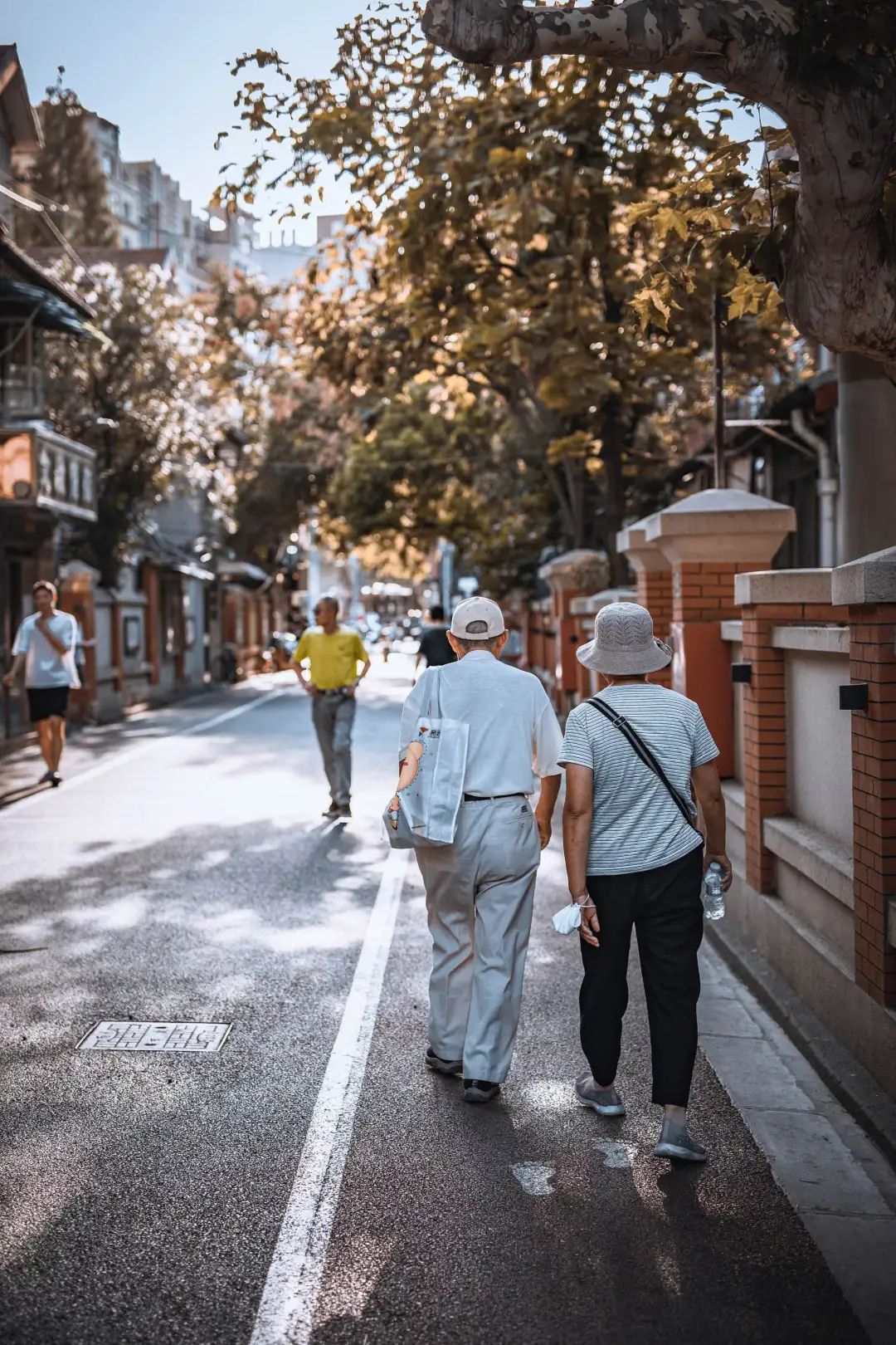 請滑動查看,社區中散步的老人&黃浦江邊晨練的老人|圖片來源@視覺中國&攝影師@Tobias_Daniel