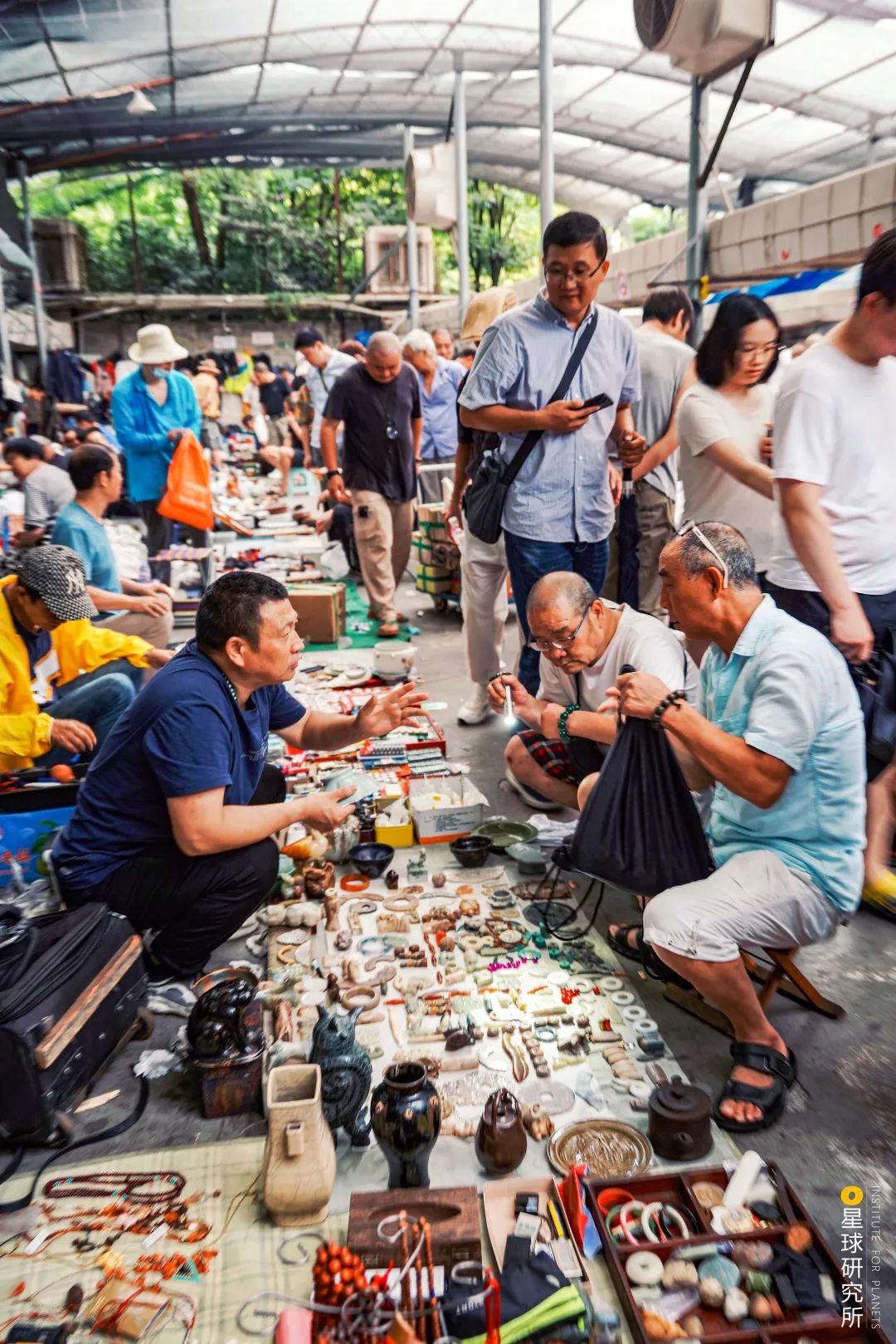 文廟古玩市集。來淘“寶貝”的古玩發燒友中有不少年逾古稀的老人|攝影師@尤宇昂