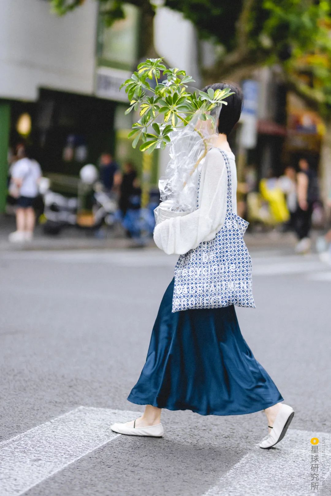 捧着花過馬路的行人|攝影師@街拍上海