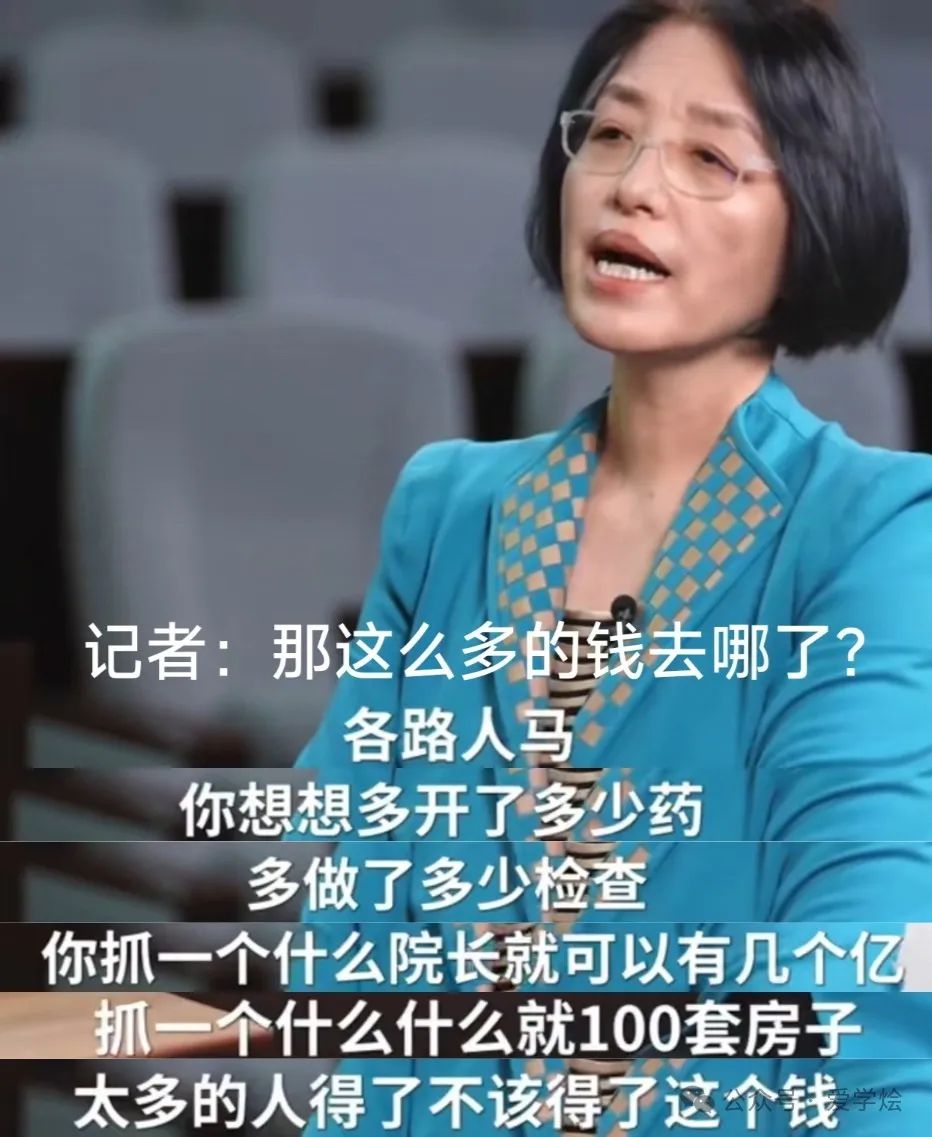 儘管她又説,“國家可以直接結醫院一百元,不用多開五百元的藥。”這話是讓醫院想賺的錢通過國家補貼又拿到了,可那些回扣的錢沒了。若醫院不再多開藥,那些醫藥公司,醫藥代表,經銷商,藥廠等等,你讓他們怎麼活?