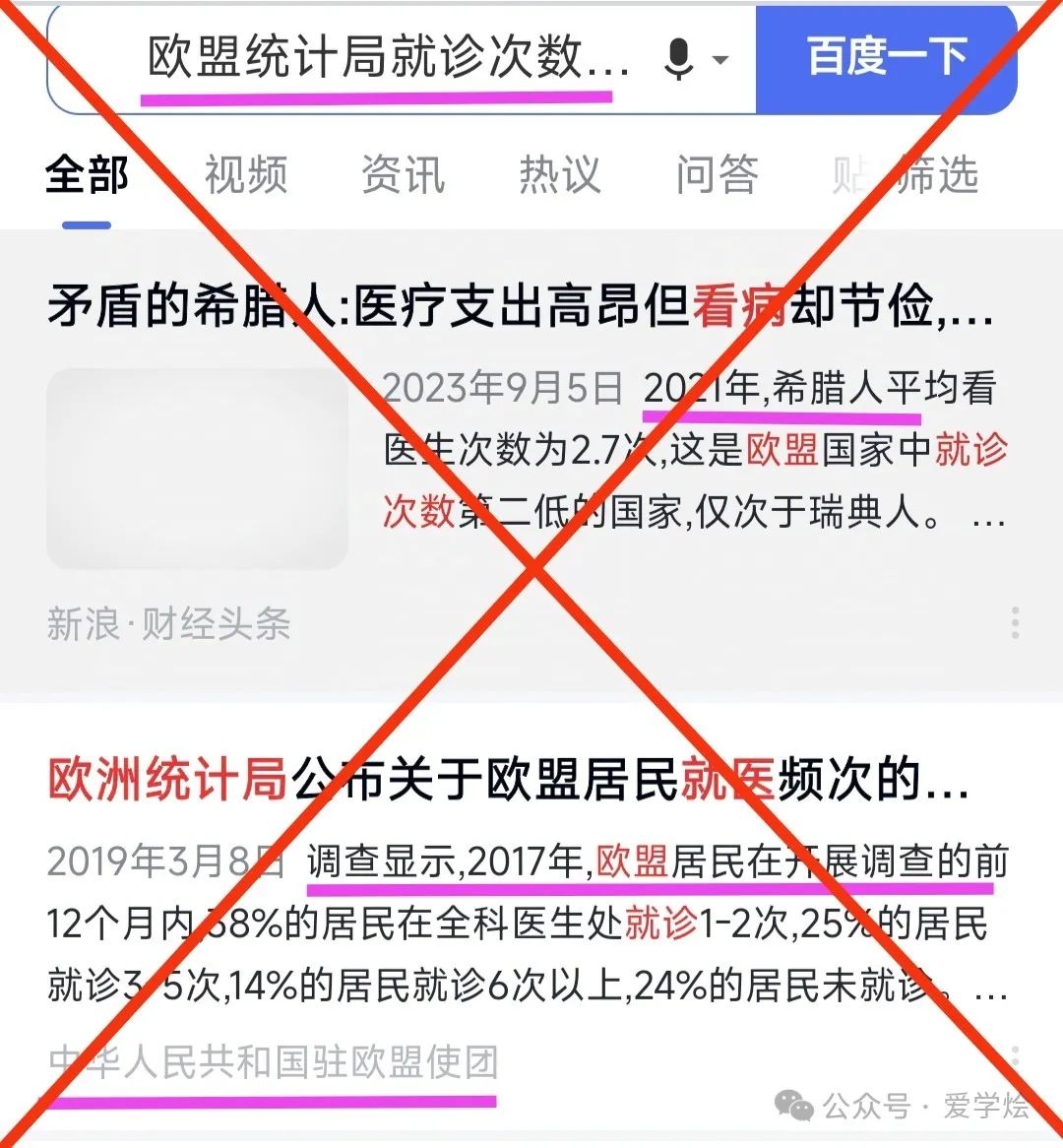 愛學燴用手機搜索了很多次,圖片中搜索的關鍵詞是“歐盟統計局就診次數”,這個能把愛學燴搜索的兩條信息排在前面,方面大家親自查證。
