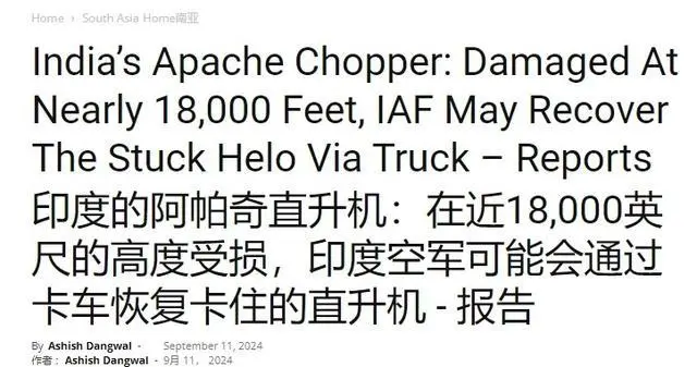日前印媒《歐亞時報》承認,今年4月印軍一架“阿帕奇”直升機在所謂“拉達克地區”墜毀後,時至今日印軍才想到辦法將直升機從山區上拖下來修復。