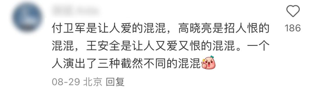 上一個讓他如此出圈的角色,是去年《漫長的季節》中的傅衞軍,傅衞軍不説話,王安全極度話癆,蔣奇明劇拋式的好演技令人讚歎,“蔣奇明遲早拿影帝”也上了熱搜。