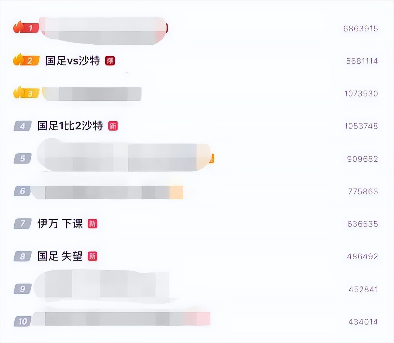 一個肉眼可見的例子是,在過去幾年時間中,凡是有國足的正式比賽,無論結果是輸是贏,都會穩穩貢獻多條熱搜,這一點也是其他運動項目無法比擬的。