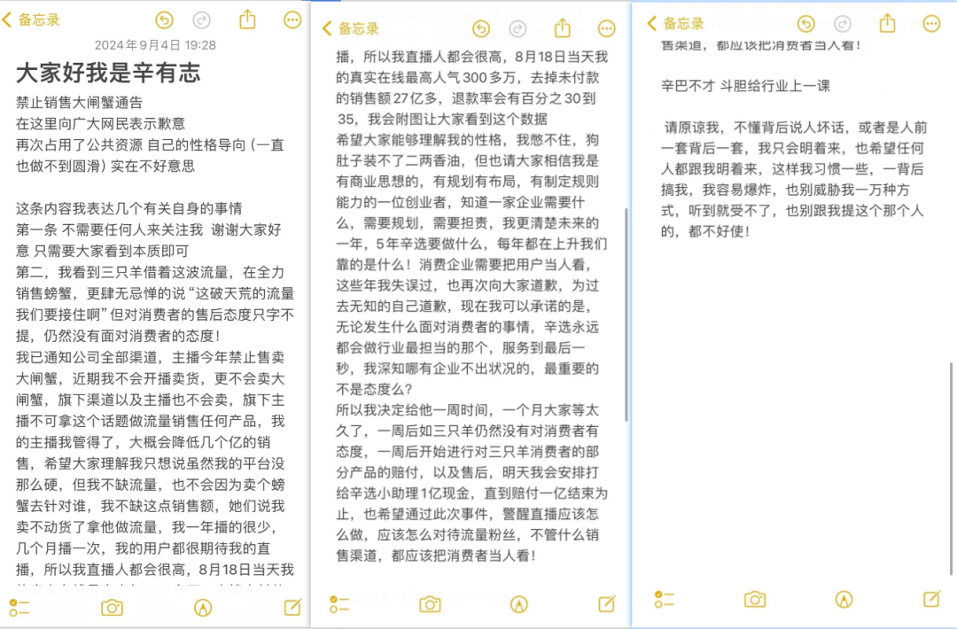 之所以要掏這個錢,是辛巴説三隻羊售賣的產品,比如茅台酒、梅菜扣肉、吹風機等,出現質量問題後,三隻羊都選擇迴避,然後繼續賣貨。
