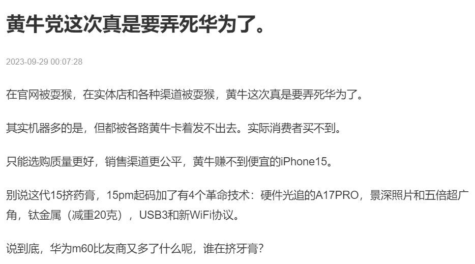 實際上,華為在此前多款機型發佈過程中,也同樣存在類似的情形,只是此時可謂有過之而無不及。例如,早在2023年Mate60發佈時,因為黃牛黨的存在,就引發了不少消費者抱怨、吐槽:官網買不到,線下和各個渠道都買不到,最後發現,為數不多的手機,其實都卡在黃牛手裏。