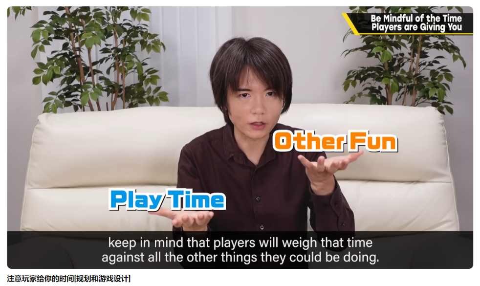 今天,櫻井政博在自己的油管賬號上傳了一段視頻,主要是向遊戲從業者分享設計思路。視頻中,櫻井政博提到在各種娛樂產品競爭消費者時間的當下,想要一直抓住玩家的注意力是一件十分困難的事情,所以在最初規劃遊戲內容時,就應該將“遊戲時長”當成“玩家需要消耗的成本”去對待。