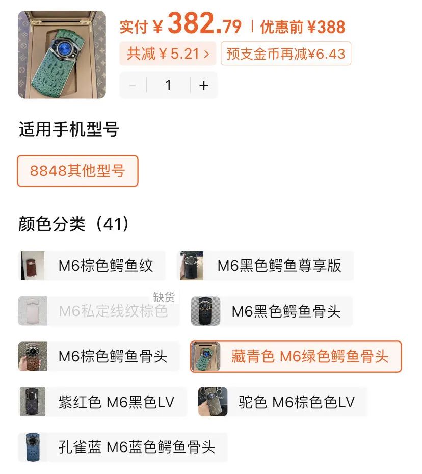 當年要價幾千、上萬的8848手機私人訂製真皮後蓋,如今在網上只要幾百塊一個,什麼款都有。