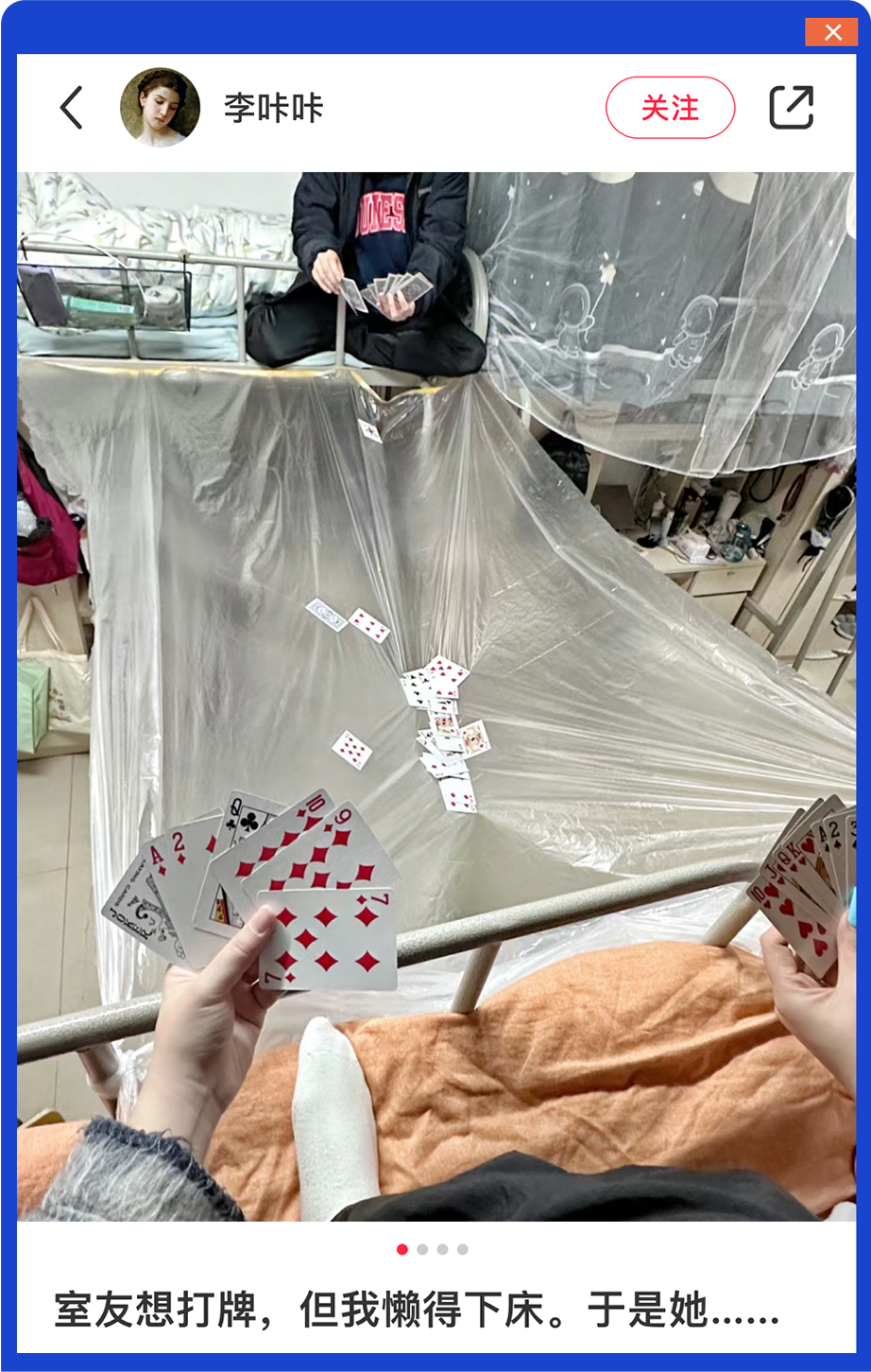 就算兩張牀之間隔着天塹,也隔絕不了他們想在上鋪鬥地主的決心。