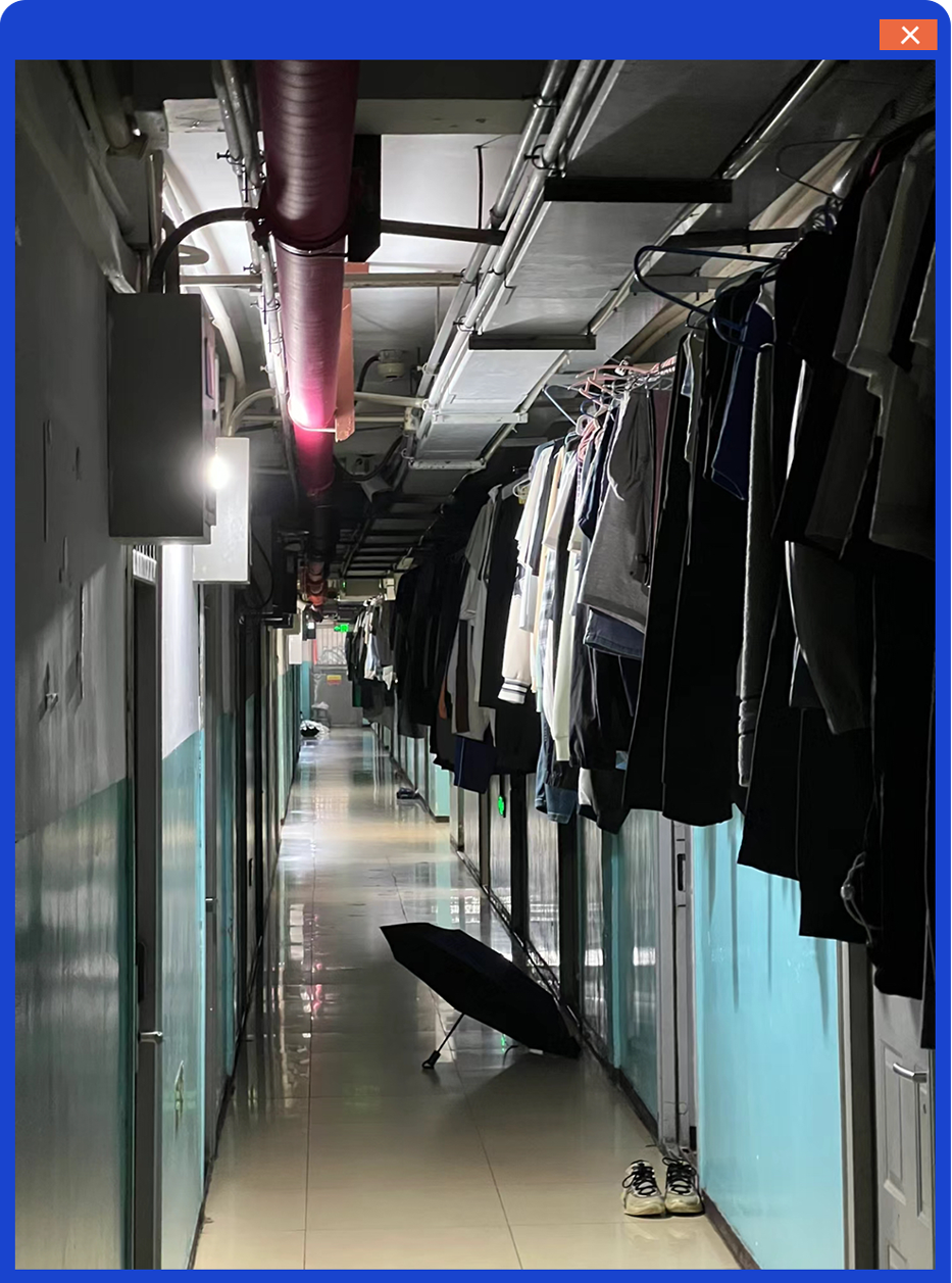 本就昏暗狹窄的過道,晾滿了雨季曬不幹的衣服。