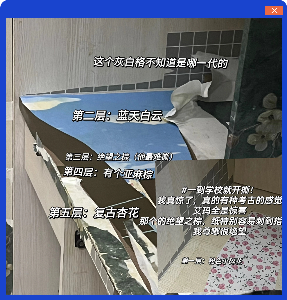 而每個手拿小鏟子開撕牆紙的大一新生,都會一邊默唸“學長/學姐,我永遠不會原諒你”,一邊發現,美麗的貼紙不止一層。