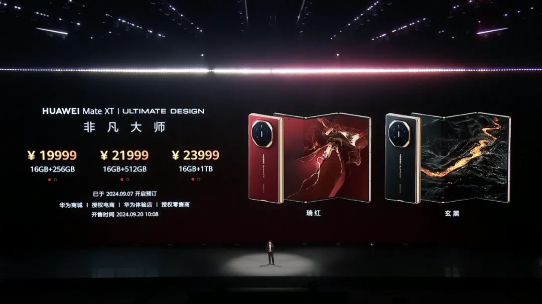 反觀2023年開始走出制裁泥淖的華為,持續創新,繼餘大嘴強調“不顯示制式的時候就是最新制式”,實現雙向衞星通訊後,再次將雙摺疊屏幕技術延展至三摺疊領域,目前HUAWEIMateXT非凡大師大定接近500萬,發佈會後不足一天時間,迅速增加百萬預定。