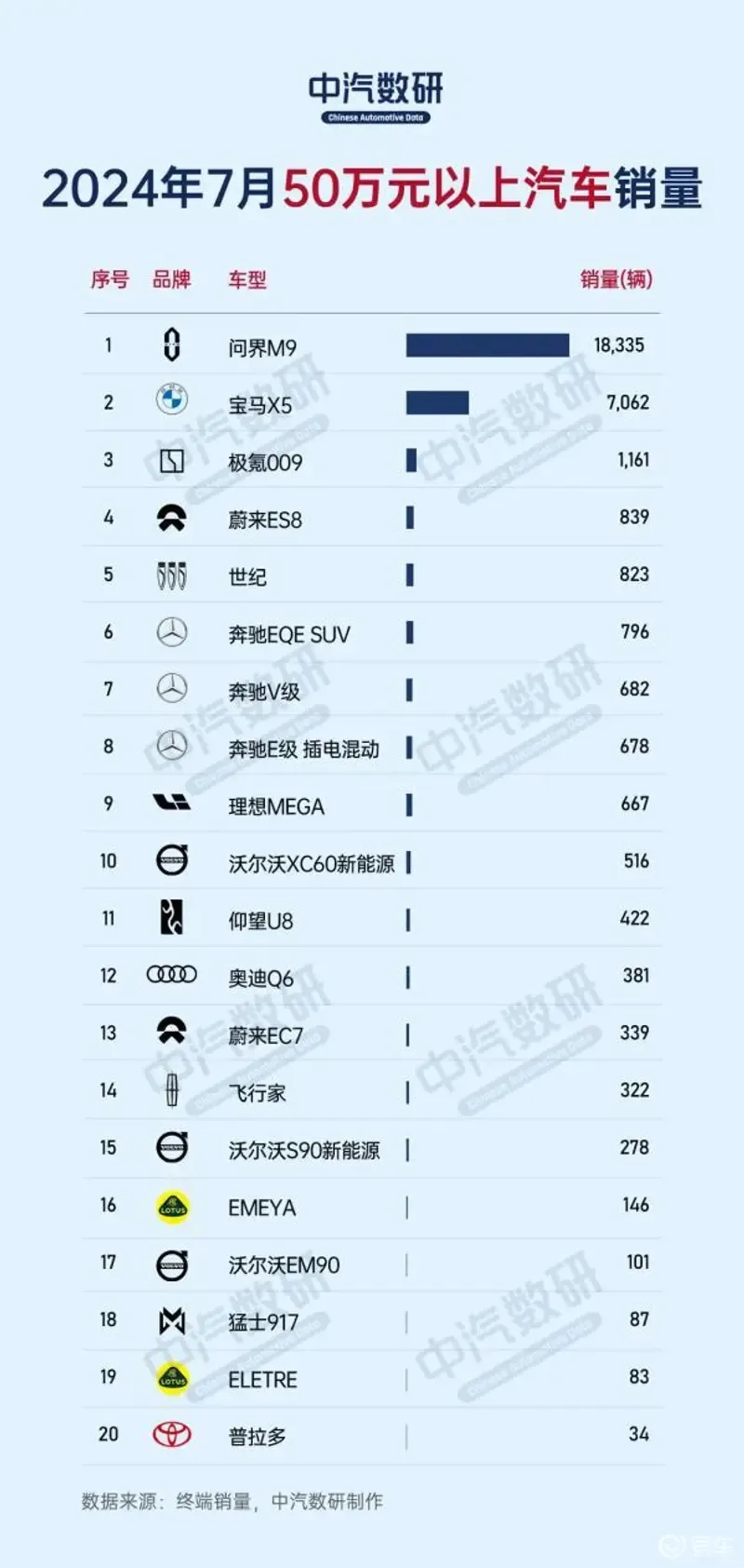 站在消費者角度來看,搭配華為智駕的車型已經獲得初步認可,比如售價在46-52萬,搭配智駕系統的賽力斯問界M9,在今年7月50萬以上汽車銷量榜單中,問界M9超過前20名銷量總和。