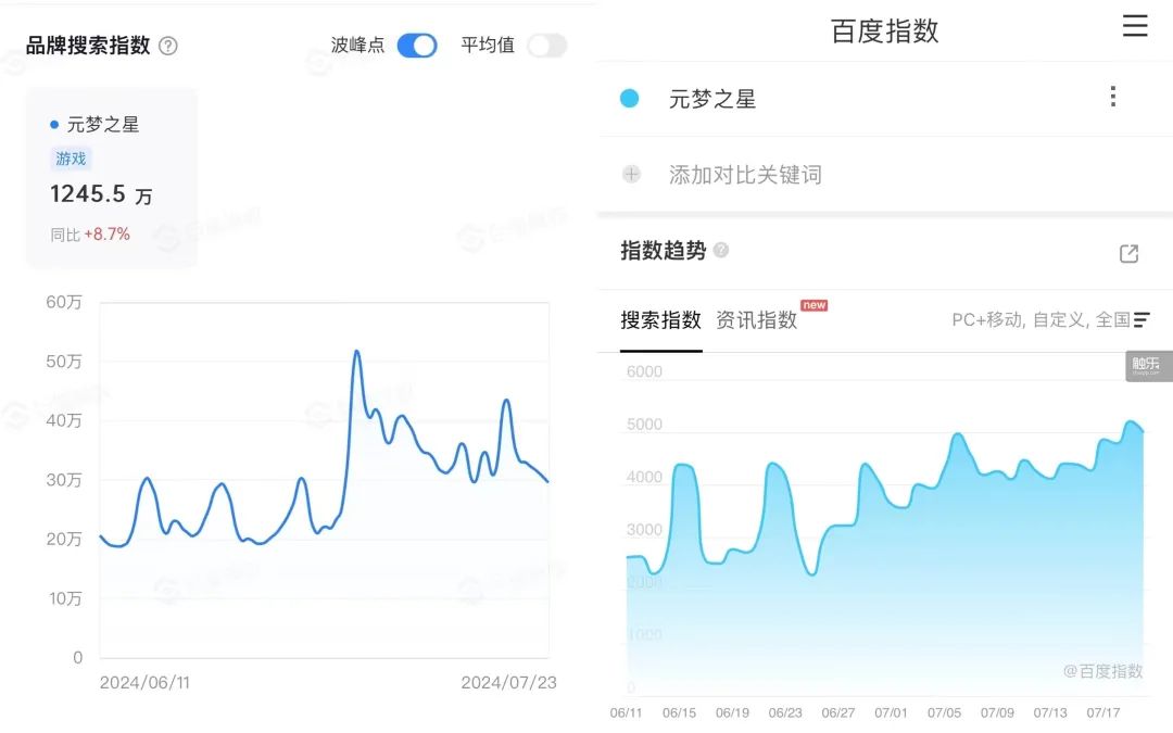 今年暑期,《元夢之星》的各項數據均有提升
