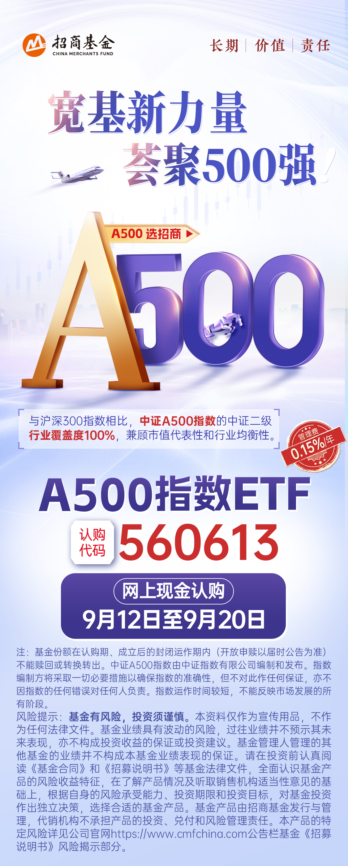 首批中證A500ETF產品正在火熱發行中,招商基金旗下A500指數ETF(認購代碼:560613)今日開啓網上現金認購,即日起至9月20日收盤截止,投資者可通過所有具基金代銷業務資格及上交所會員資格的券商,網上現金一鍵認購A500指數ETF。