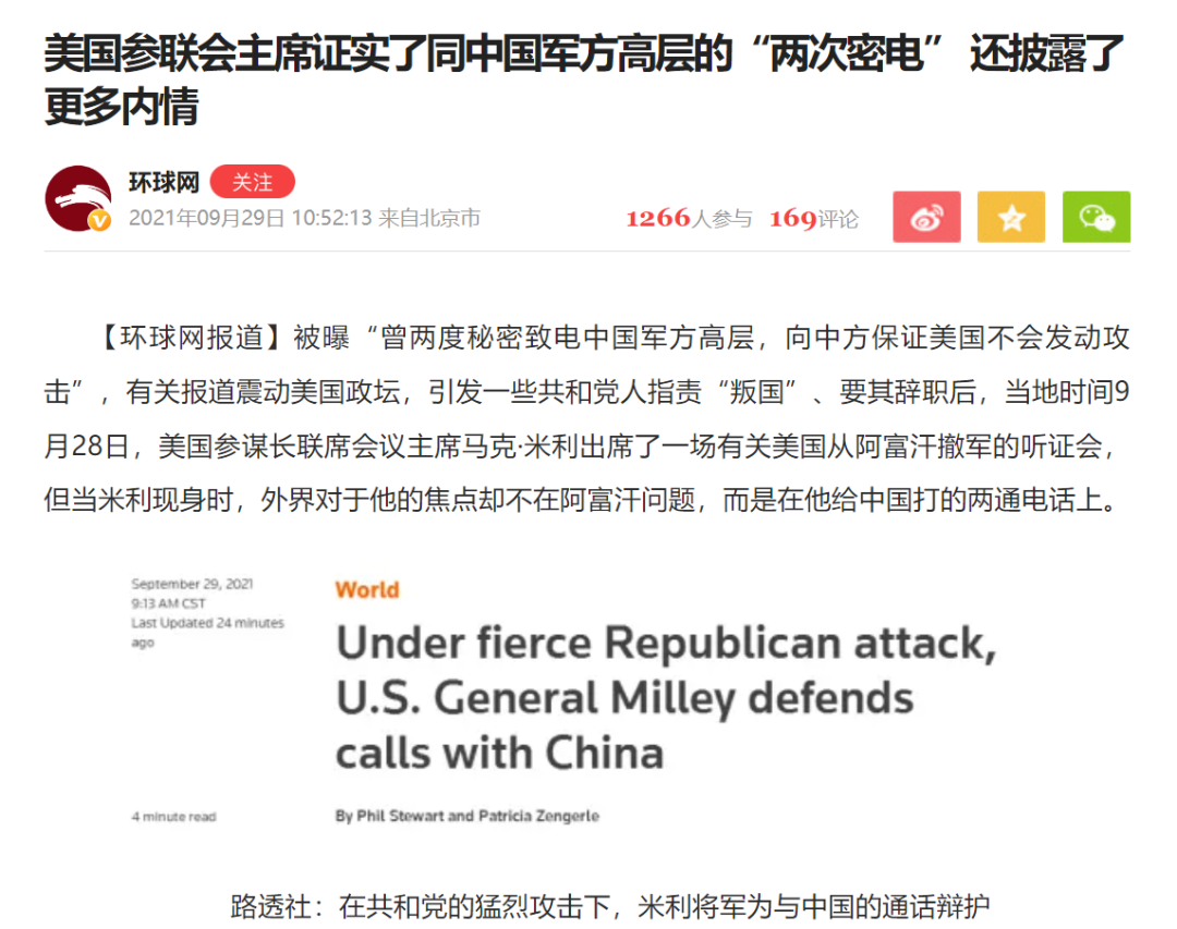 在此態勢下,為避免中美誤判,美國參謀長聯席會議主席米利竟然秘密致電中國,保證不會不會對中國開戰。此事後來在2021年被美國媒體披露後,在美國掀起了震動。