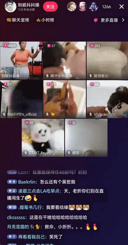 現在看來,雖然規模尚未形成,但抖抖操直播間已經被部分二次元受眾作為新的聚集地,連麥展示則可以看作向同好發出的召喚和邀請,意外被平台推送這一奇景的網友也能從中收穫足夠多的樂趣。