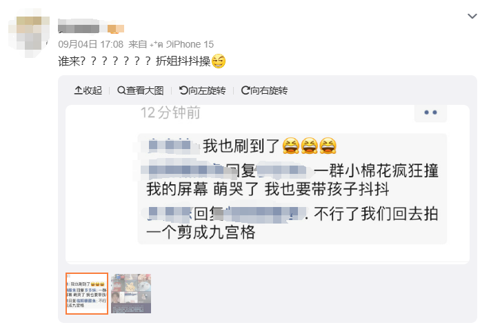 這不,看了好幾天的抖抖操,已經有二次元同胞開始自己組織“二次元抖抖操”;也有抖抖操主播嘗試加入其中,還是那略炸的麥、熟悉的寶寶稱呼,不同之處在於中年阿姨主播的手上還捏着一隻小八。