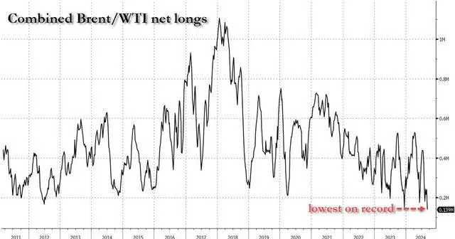 對沖基金再次開始大幅削減看漲石油的押注,淨多頭倉位跌至歷史最低水平。不過有分析指出這是反向指標,通常標誌着市場短期觸底。
